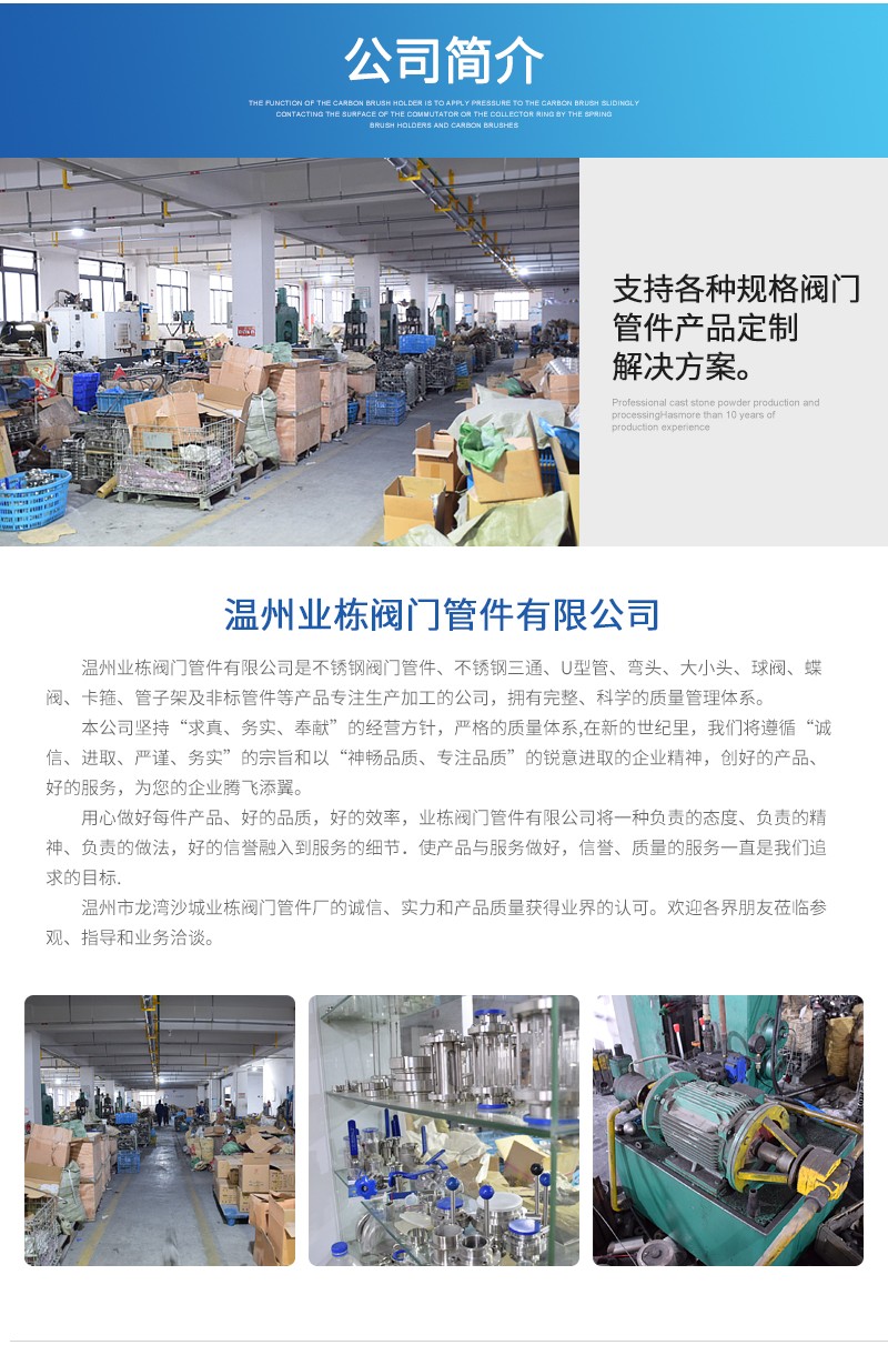 Copyright ? 2022 溫州業(yè)棟閥門管件有限公司 All rights are reserved. 網(wǎng)站地圖 溫州市業(yè)棟閥門管件有限公司專業(yè)生產(chǎn)加工不銹鋼管件,不銹鋼三通,不銹鋼彎頭,衛(wèi)生級(jí)管件等產(chǎn)品